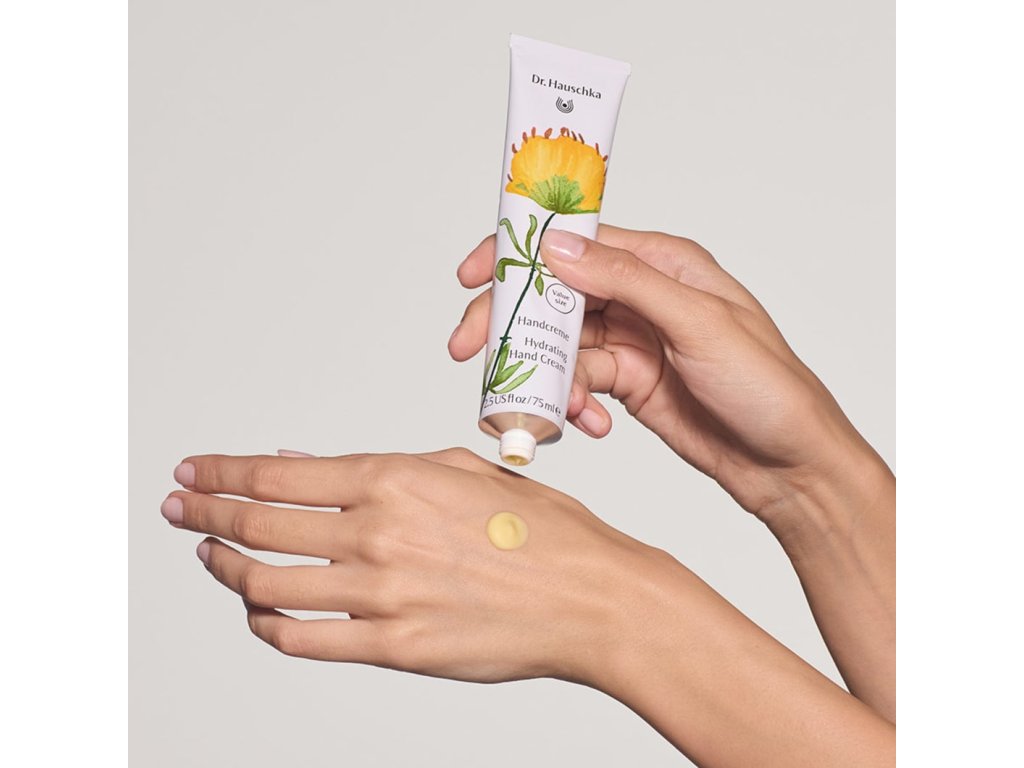 Hydratační krém na ruce Dr. Hauschka vás bude věrně doprovázet po celý den. Rychle se vstřebává, nezanechává mastné zbytky a je skvělý hlavně na velmi suchou až popraskanou pokožku a hlavně pro každého, kdo má citlivé a namáhané ruce. Pečlivě vybrané výtažky z růže a cenné rostlinné vosky regulují vlhkost pokožky, regenerují a vytváří ochranu před vnějšími vlivy. Krém je také vhodný k ošetření hrubší pokožky loktů a stehen. Vzhledem k výborné roztíratelnosti je velmi vydatný, rychle se vstřebává a dodatečně nemastí.