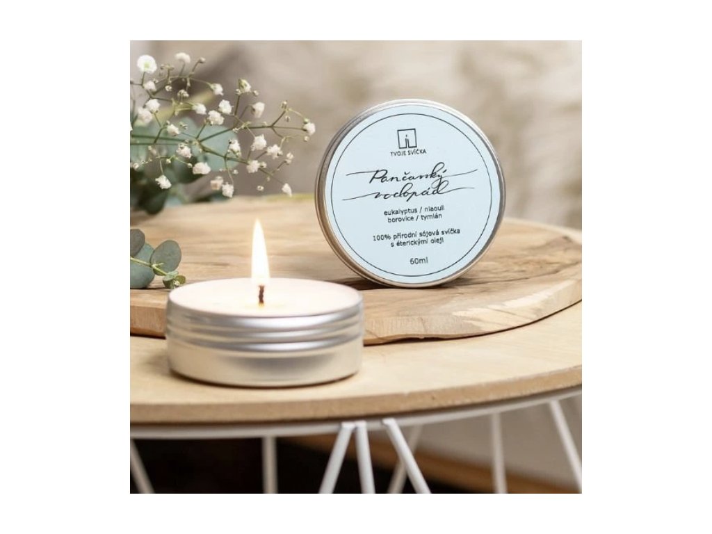 - Poketka Tvoje Svíčka (55 g) – malá vonná svíčka ze sójového vosku, která vydrží hořet cca 12 hodin.